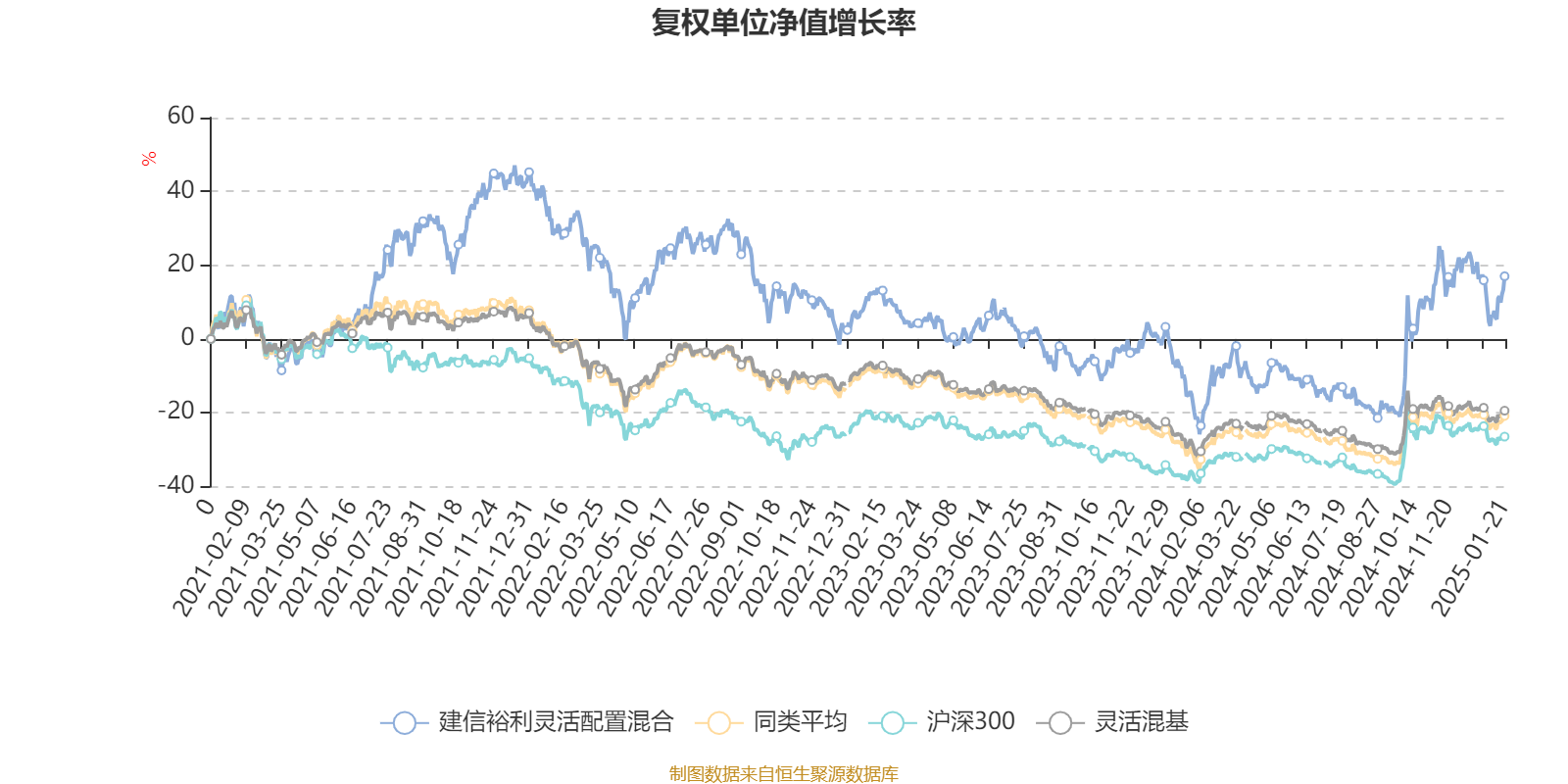 截至1月21日,建信裕利灵活配置混合近三个月复权单位净值增长率为6.62%,位于同类可比基金87/920;近半年复权单位净值增长率为34.48%,位于同类可比基金17/920;近一年复权单位净值增长率为31.87%,位于同类可比基金53/920;近三年复权单位净值增长率为-12.14%,位于同类可比基金236/898。