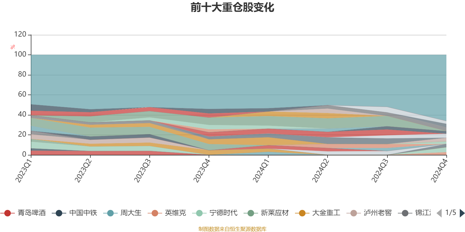 截至2024年四季度末,基金十大重仓股分别是宁德时代、新泉股份、立讯精密、尚太科技、富临精工、瀚蓝环境、阳光电源、英维克、许继电气、东山精密。