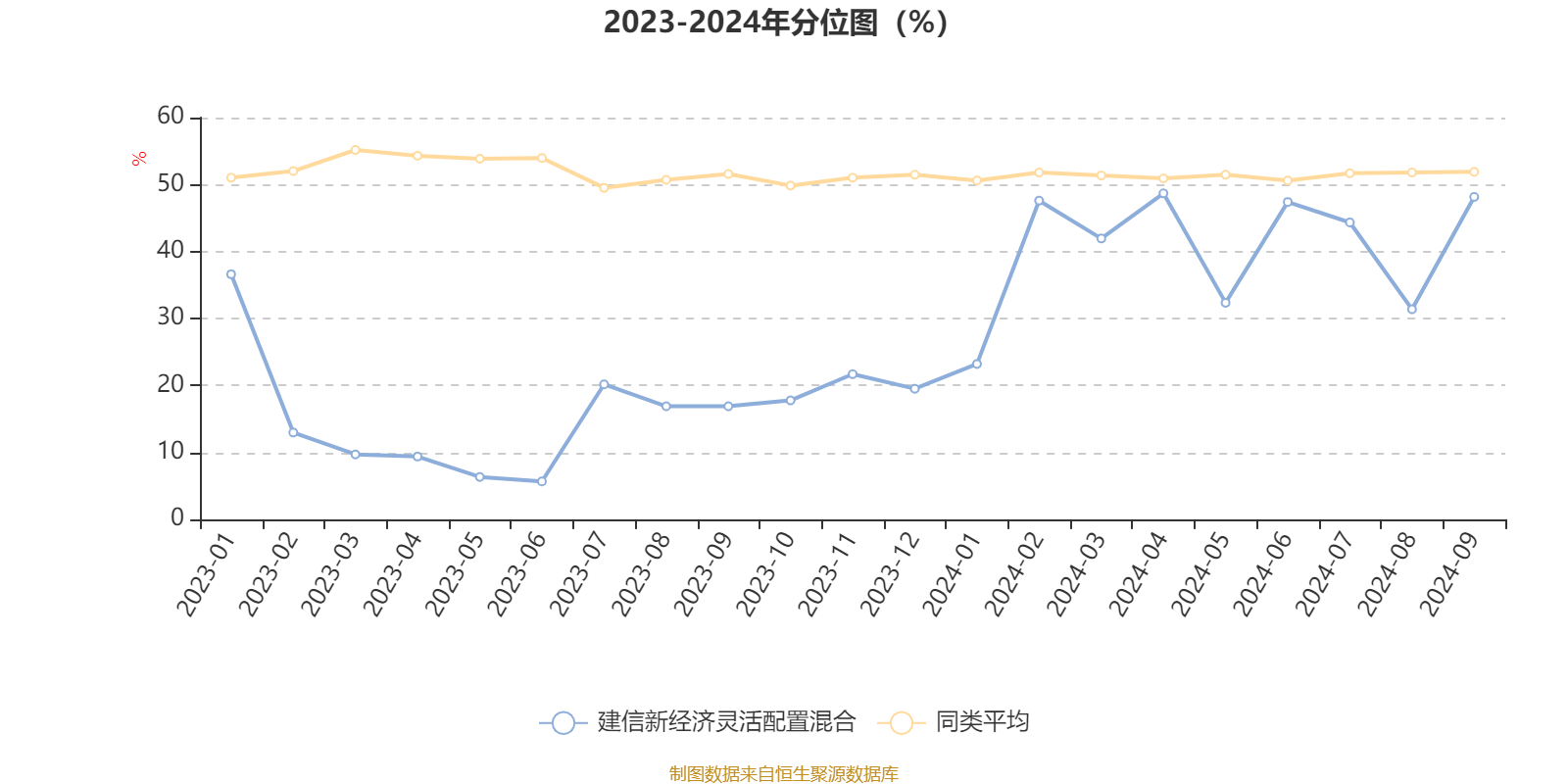 通过所选区间该基金净值增长率分位图,可以观察该基金与同类基金业绩比较情况。图为坐标原点到区间内某时点的净值增长率在同类基金中的分位数。