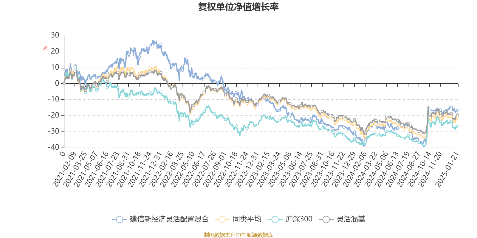 截至1月21日,建信新经济灵活配置混合近三个月复权单位净值增长率为0.16%,位于同类可比基金346/920;近半年复权单位净值增长率为14.52%,位于同类可比基金226/920;近一年复权单位净值增长率为27.53%,位于同类可比基金86/920;近三年复权单位净值增长率为-28.68%,位于同类可比基金609/898。